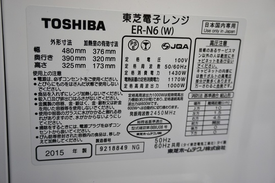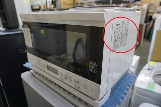 電子レンジは本体側面にメーカー名、型番、年式記載のラベルが貼っております