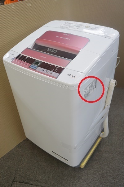 商品により異なりますが、洗濯機は本体の上フタの内側にシールが貼っており、そこに型番、年式等の記載がございます。メーカー、機種により、本体背面や側面に型番記載のラベルが貼ってある場合もございます。