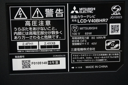 液晶テレビは本体背面部分にメーカー名、型番記載のラベルが貼ってあります。年式も同じ場所に記載があるか、本体背面のいずれかに○○年製との記載のシールが貼っております。