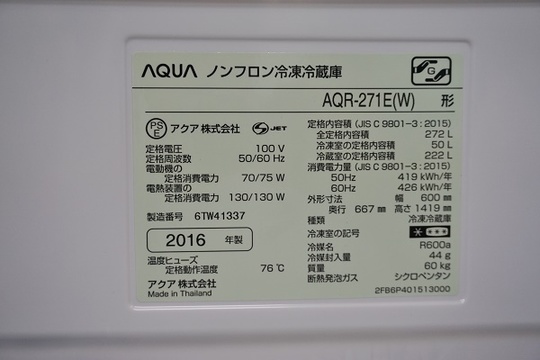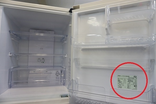 ほとんどの冷蔵庫は商品の冷蔵室側扉を開いて、扉の内側にラベルが貼ってあります。