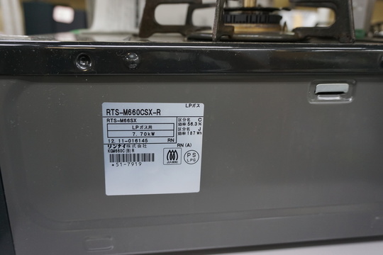 ガスコンロは本体側面にメーカー名、型番、年式記載のラベルが貼っております。